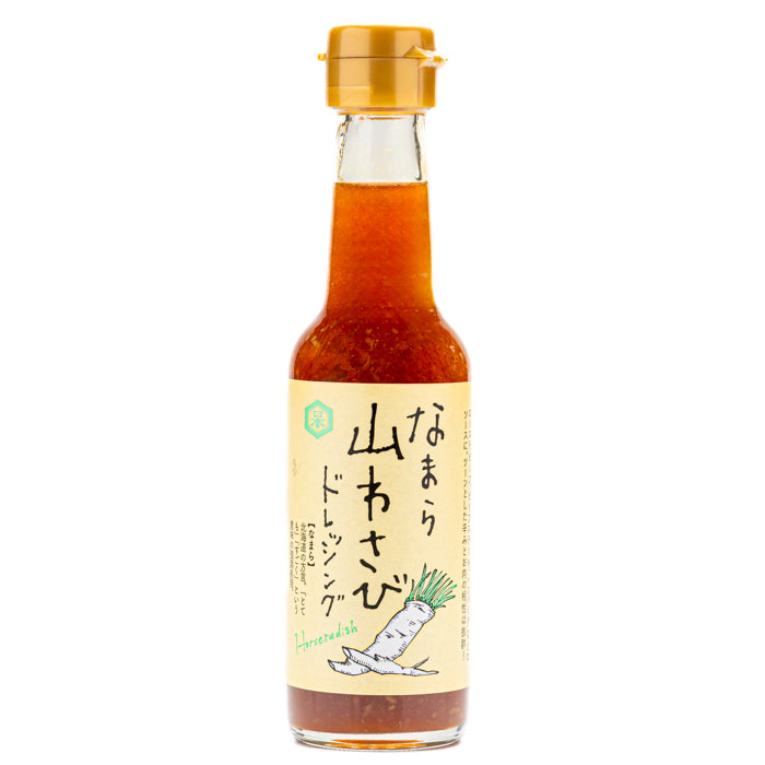 【原材料名】:しょうゆ(北海道製造)りんご酢、食用植物性油脂、糖類(砂糖、水飴)、わさび加工品(西洋わさび、植物性油脂)、食塩、/アルコール、香料、調味料(アミノ酸等)、増粘剤(キサンタン)酸味料、ビタミンB1(一部に小麦・大豆・りんごを含む)