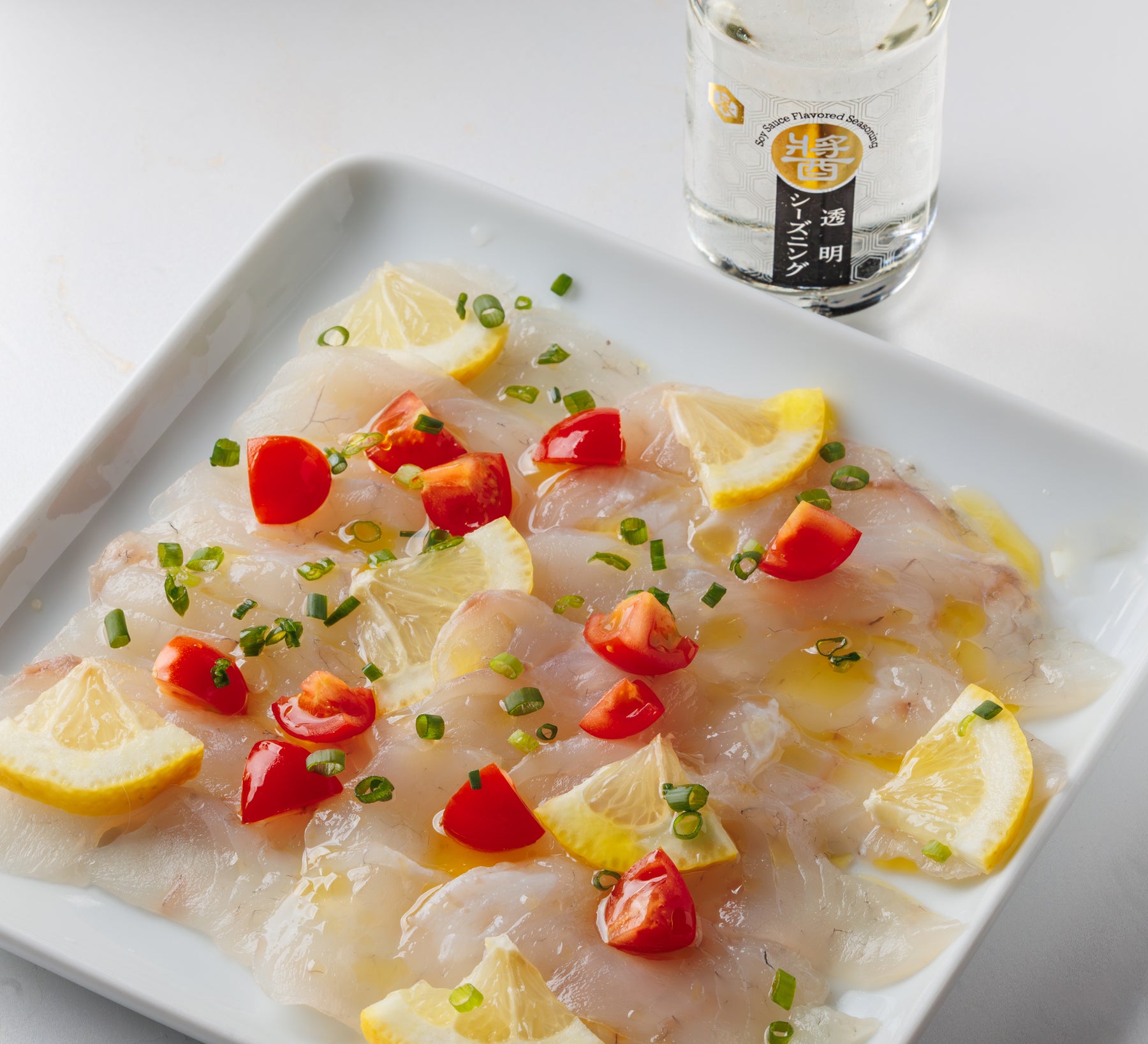 まるでお醤油のような「透明な調味料」です。卓上しょうゆとしてお使いいただけます。透明ですので食材本来のお色を引き立てます。